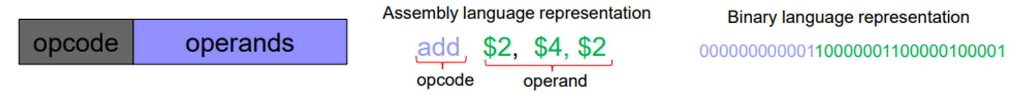 - Opcode (i.e., operation code) : 하드웨어가 어떤 작업을 할 지에 대한 명령어