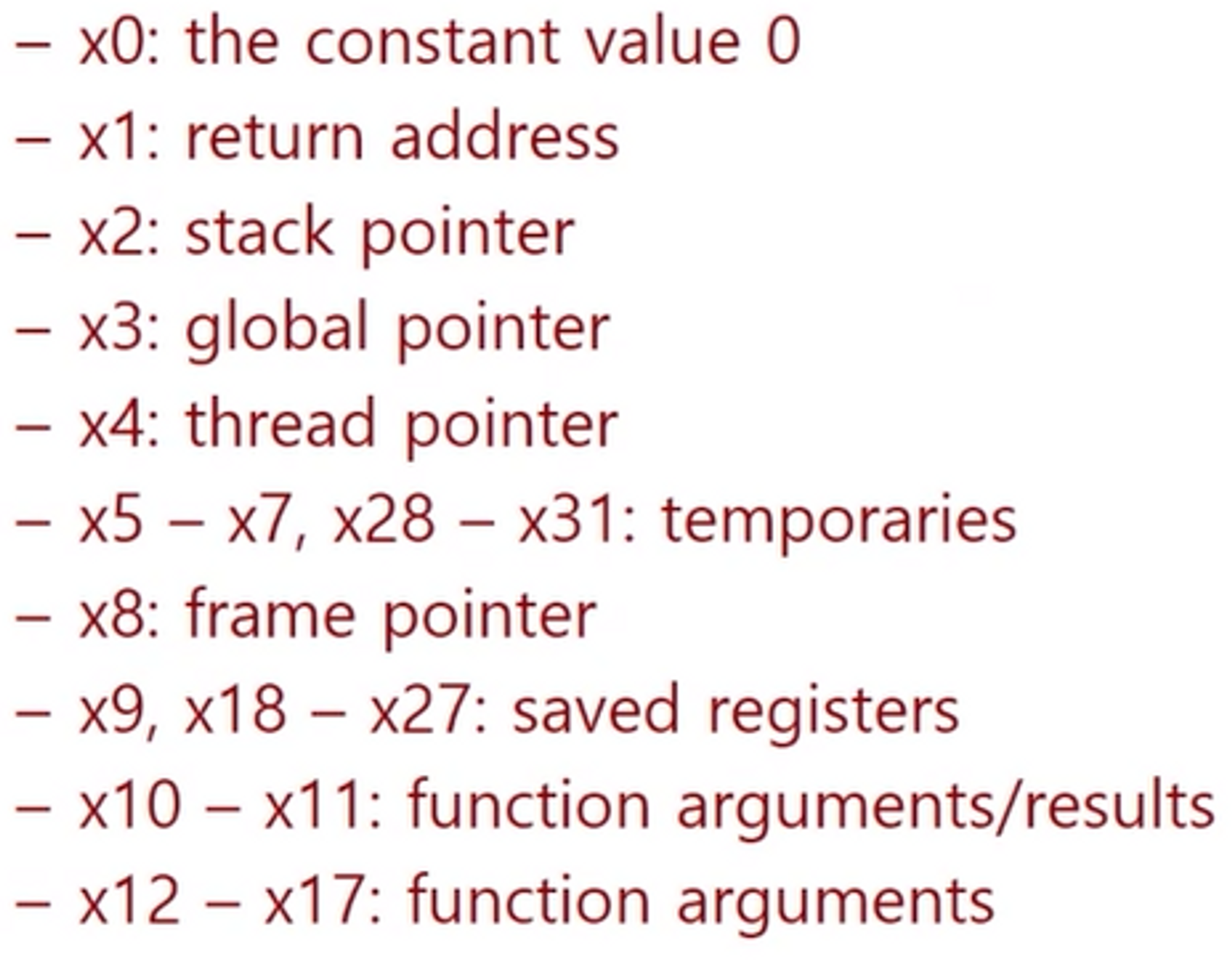 RISC-V는 32-bit 레지스터를 32개 가지고 있다 : x0~x31