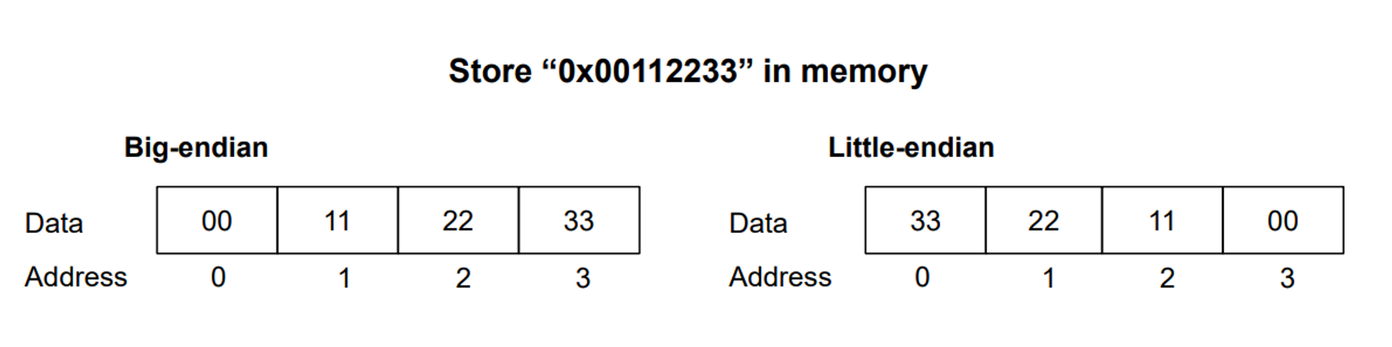 - Little endian이라면, 0x100: 67, 0x101: 45, 0x102: 23, 0x103: 01 이렇게 저장된다
