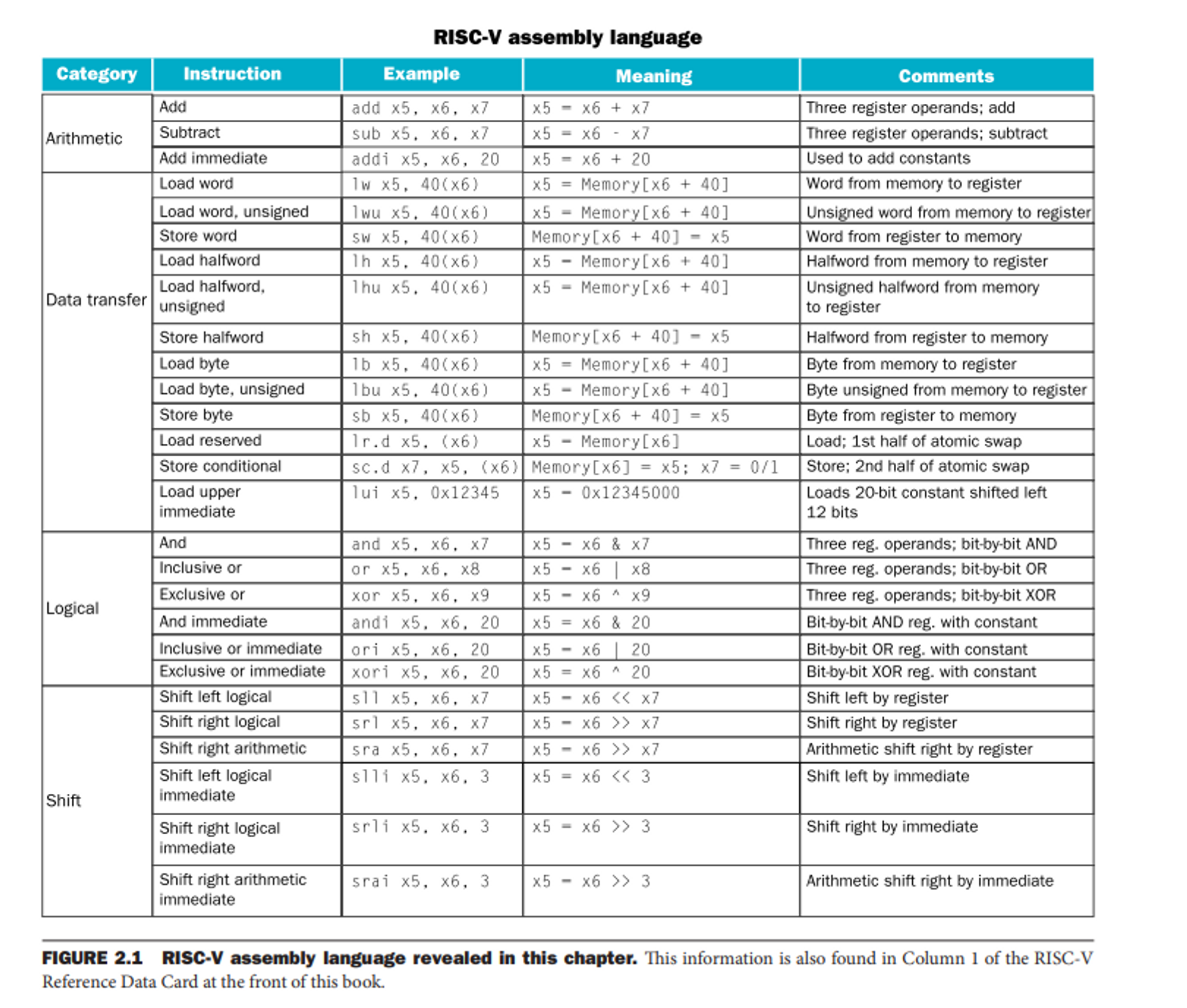 RISC-V에서 arithmetic operations(산술적 연산)은 오직 레지스터에서 작동하므로 RISC-V는 반드시 메모리와 레지스터 사이를 전송하는 instruction이 있어야 합니다.